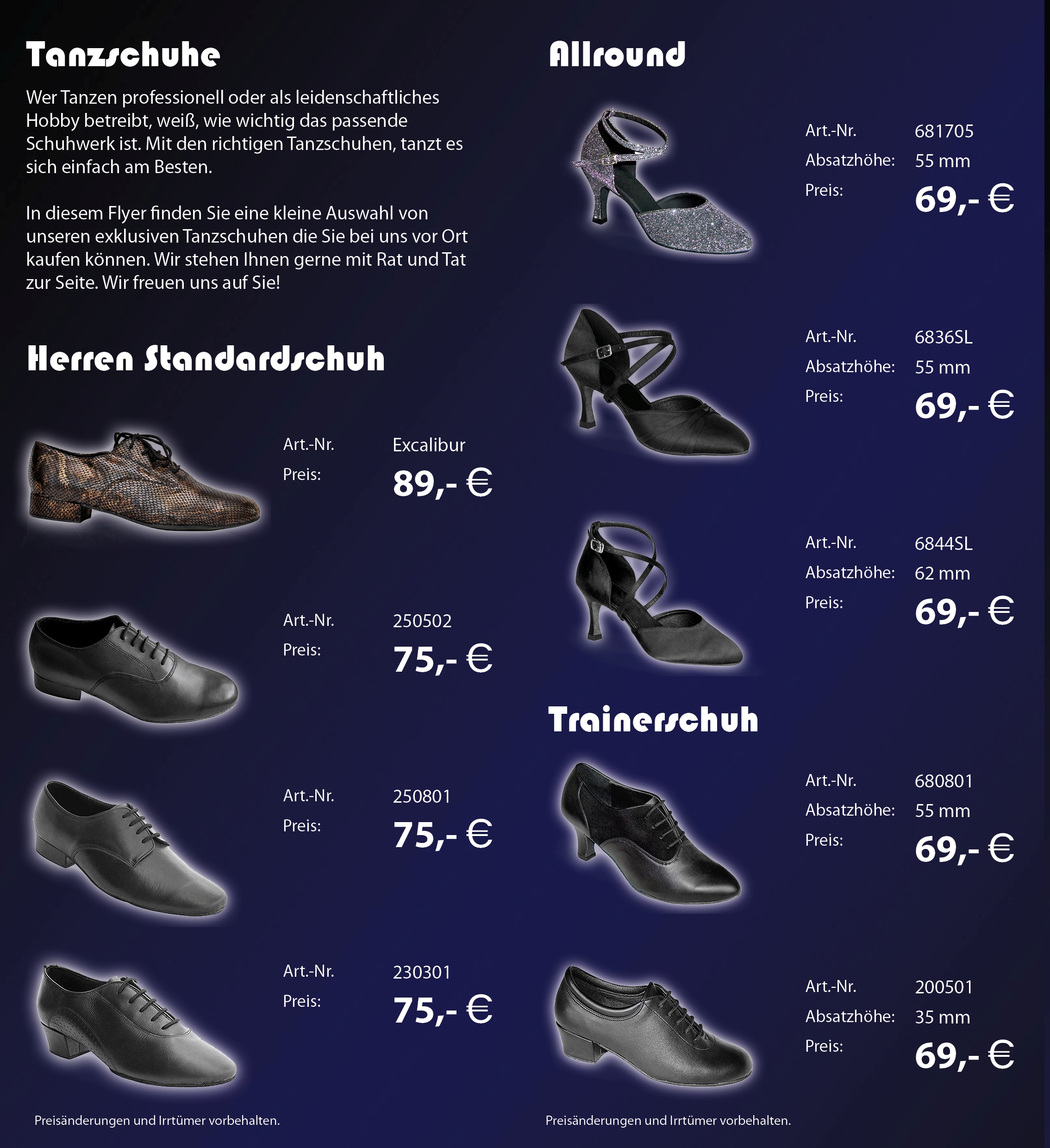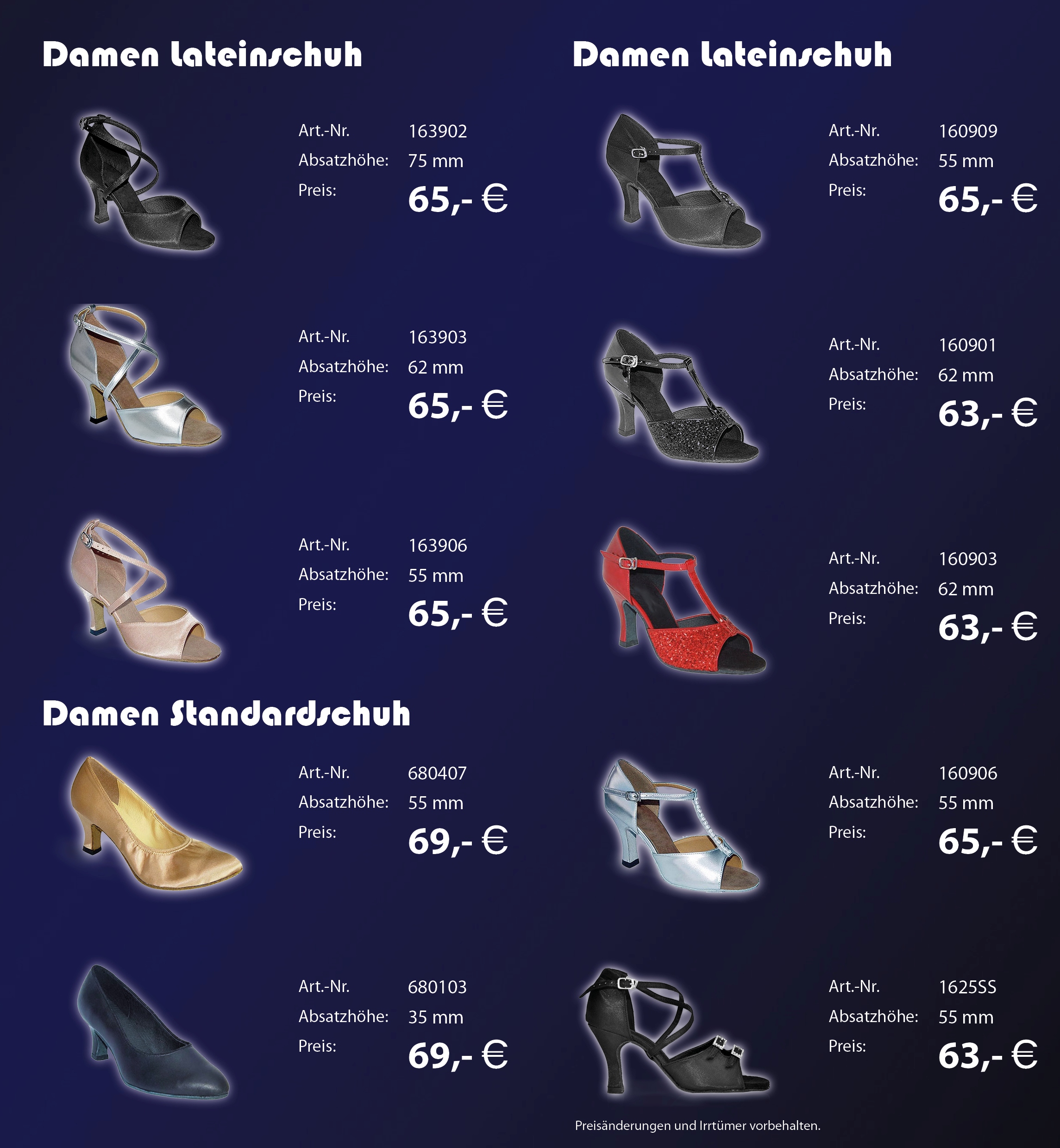 Bei uns in der Tanzschule in allen gängingen Größen vorrätig.